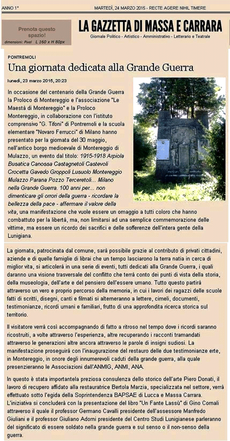GAZZETTA MASSA CARRARA 22.03.15 LA NAZIONE LUNIGIANA